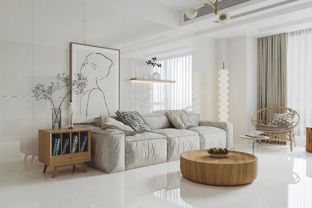 亮面侘寂風(fēng)格少些暗面,多些清新明亮。桌椅軟飾遵循侘寂風(fēng)簡(jiǎn)潔裝飾,自由隨性中增加舒適感。