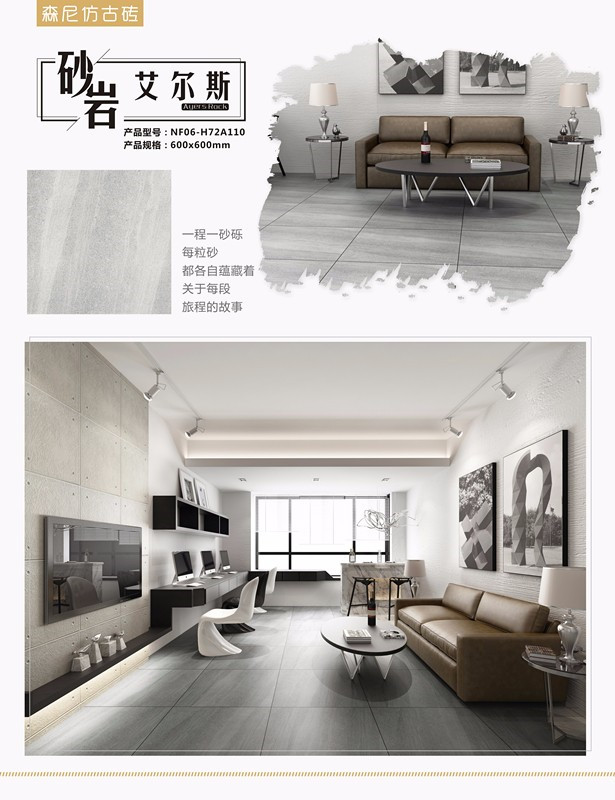 糅合砂礫質(zhì)感,加入進(jìn)口干粒,閃閃發(fā)光,觸摸磚面顆粒感明顯;
