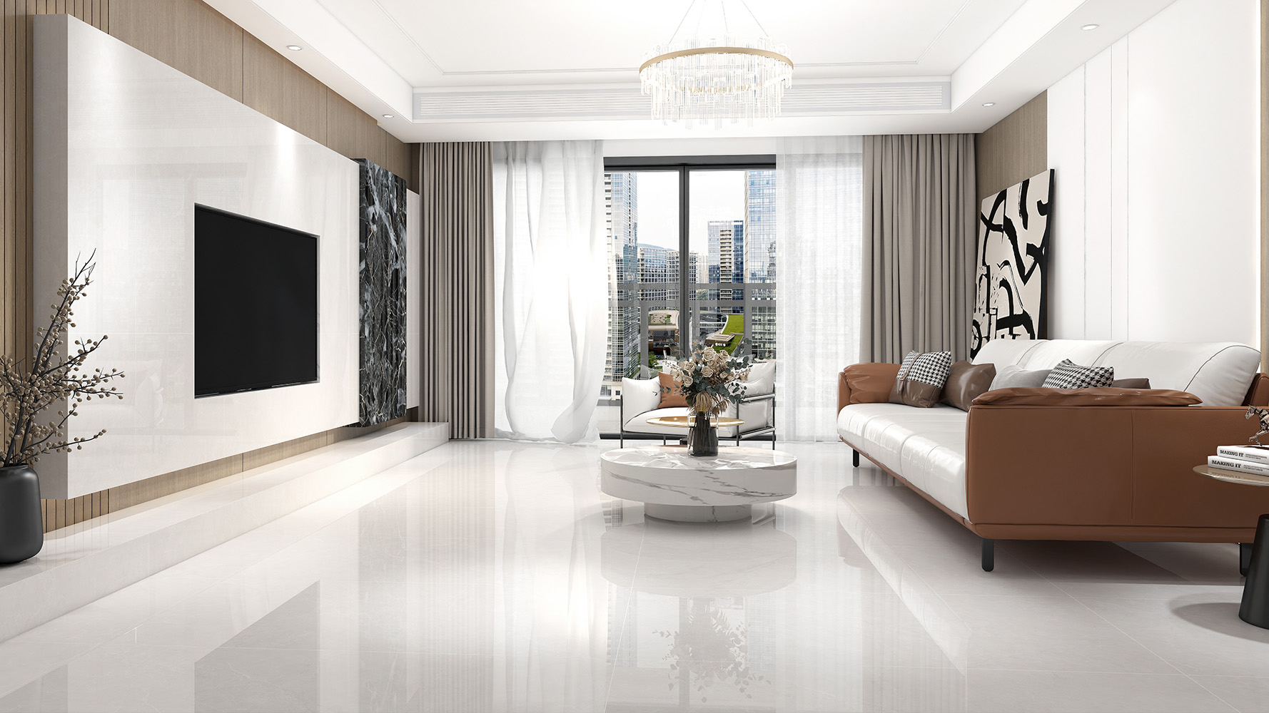 詩意的產品,配得上詩意的生活。梨花米黃沒有梨花白深厚的歷史底蘊,多了詩情畫意的清顏,以光面照亮室內空間,清淺而少紋理的產品特性,為空間注入一股清流,年輕而活力。