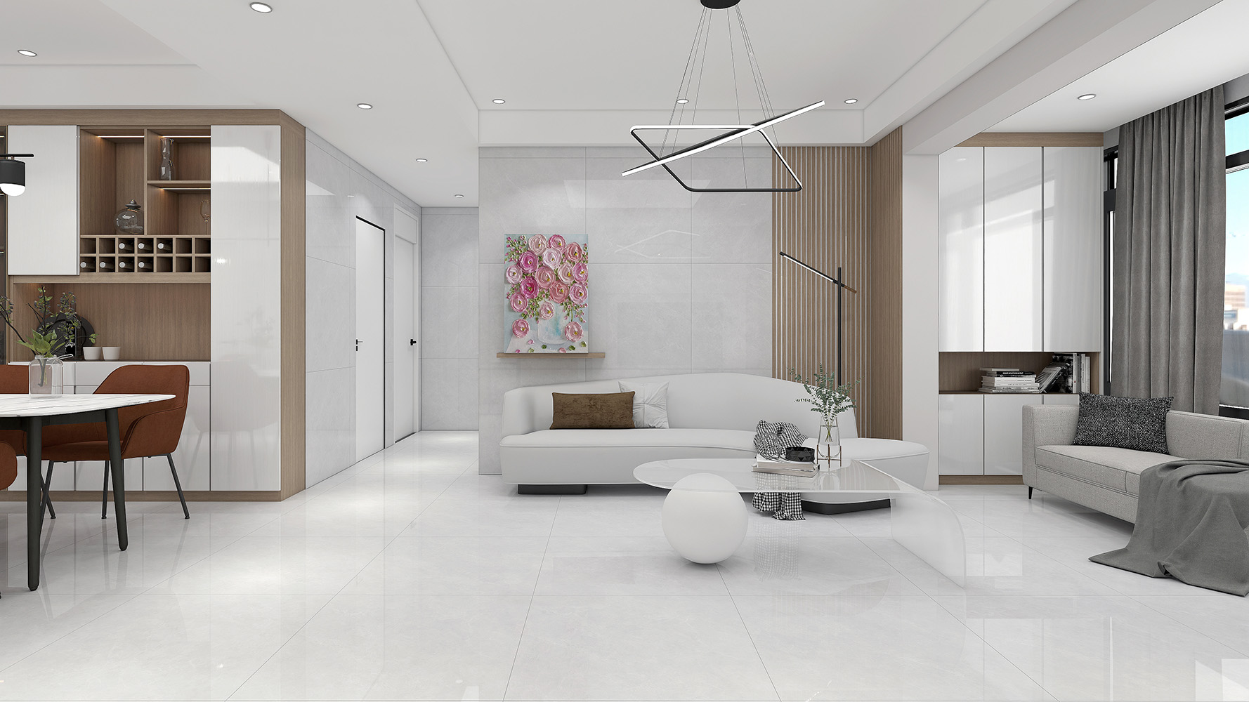 科技與現(xiàn)代的感官結(jié)合,灰中帶藍又帶點黑,形成云母石獨特的造型,結(jié)合巖石紋條順式靈活線條,賦予板材高級時尚。