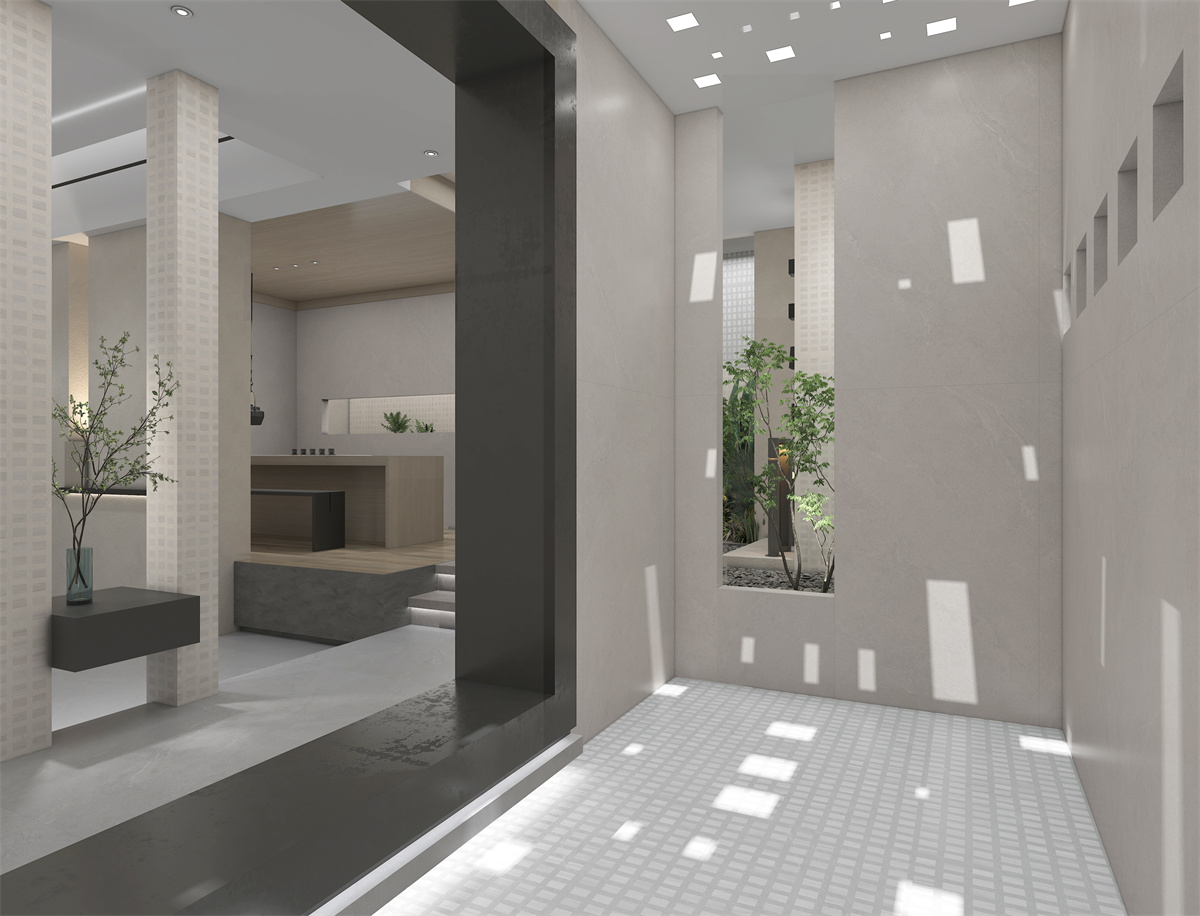 紋理似隱入青靄的山間石階,在視覺上引導(dǎo)視線向上延伸。為靜態(tài)的空間注入動態(tài)的探索精神,象征“步步青云”的積極寓意。