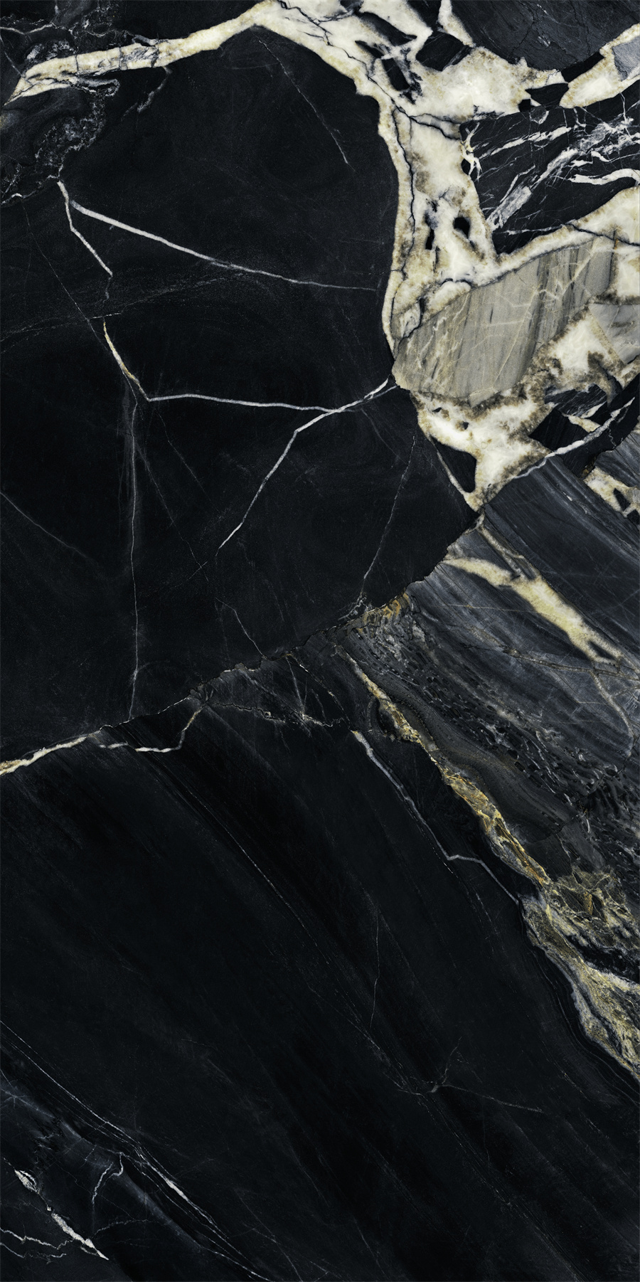 深灰底色中透出銀白色裂痕,如極光劃過午夜天幕,詮釋靜謐中的高級神秘。